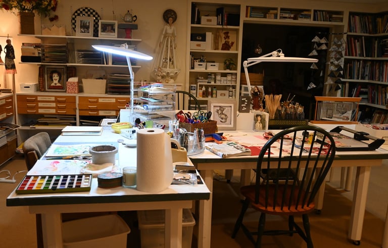 My environment is important to me, filled with books, paints, and ephemera.