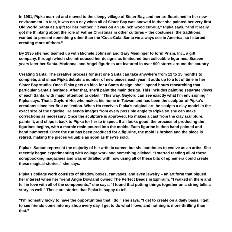 “Time in my studio calms my soul and inspires my imagination.” - Pipka