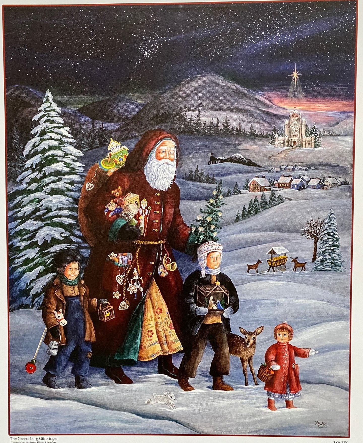 Father Larry and Jerry flew in from Greensburg, PA to Milwaukee, rented a car and drove up to the Sister Bay Christkindlmarkt. After two days of shopping, visiting and eating all the good food, Father was inspired to have a Christmas Market celebration at his parish in Pennsylvania. In the meantime, he was appointed Bishop by Pope Francis and in charge of 5 diocese. Under his leadership, and with his remarkable team and volunteers, A Christmas Market in their diocese was planned for 2023. Bishop asked me to design a Santa that represented his parish. I said I would, but I would need to come out and visit so I could get inspired by the culture and history of the area. Bishop invited me to come visit which I did in the summer of 2023. For several days, the Bishop gave me a tour of the area explaining that western Pennsylvania was once a heavy coal mining region, acquainting me with Slovak families and visiting very old churches.